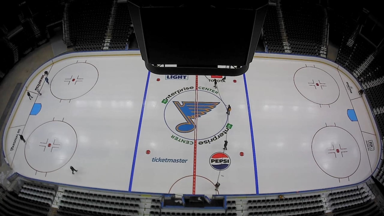 Watch from start to finish as the St. Louis Blues ice team installs a new sheet at Enterprise Center for the upcoming NHL season.