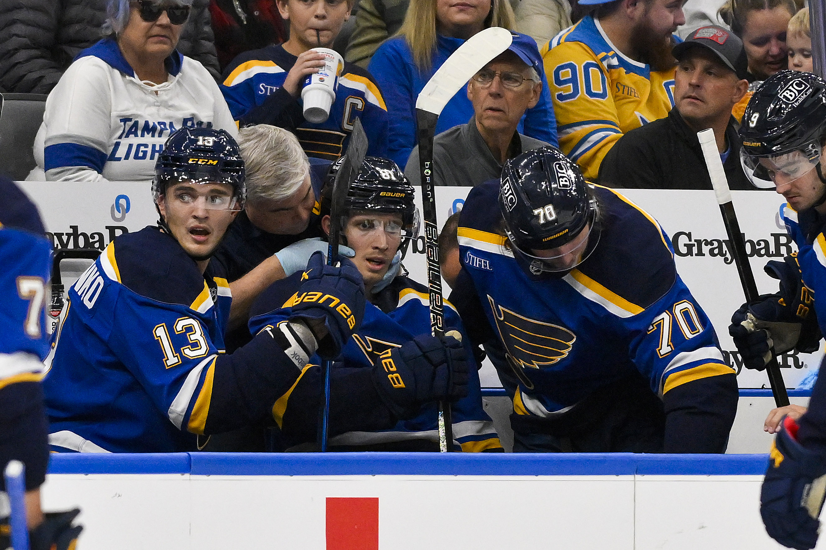 "Just scared for the person, and obviously my friend and our teammate," Blues forward Jake Neighbours said. "That's really all you're thinking about at that point in time is praying that he's going to be OK, try and keep your head from going to the worse, but it's a scary situation, something you don't want to be a part of. You just try and hope for the best and stay positive about it and hope that he's going to be OK."