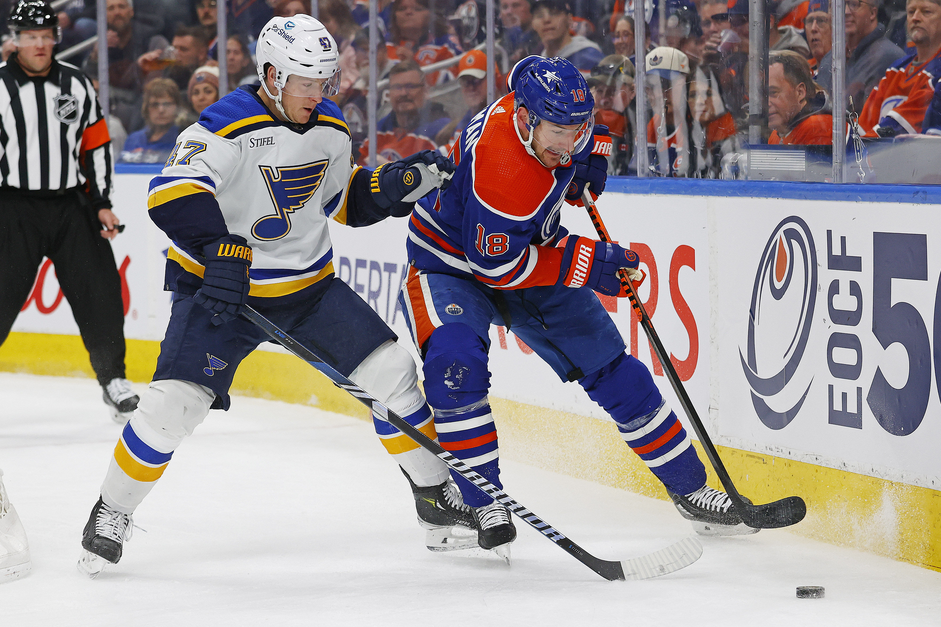 MARYLAND HEIGHTS, Mo. -- Torey Krug always knew something was there when, by his account, he was shoved into the boards from behind during the 2018 Stanley Cup Playoffs.