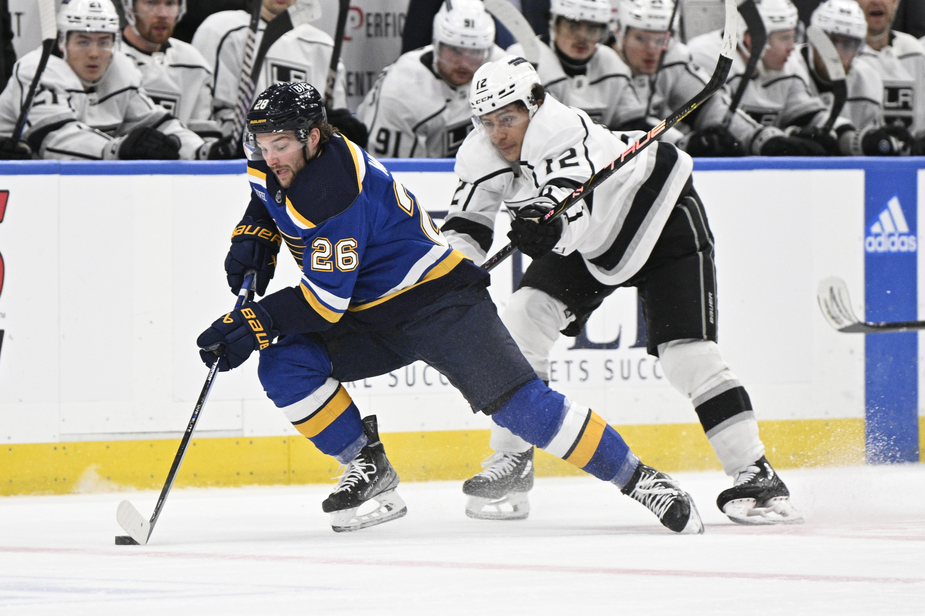 The influx of guys going to the box seemed to throw the Kings out of rhythm, and although L.A. did get a shorthanded goal, the Blues did counter with a power-play goal and 12 power-play shots in the game with a few near-misses against the league's No. 1 penalty kill, including one by Robert Thomas in the bumper slot with 5:45 remaining that required a terrific glove save by David Rittich.