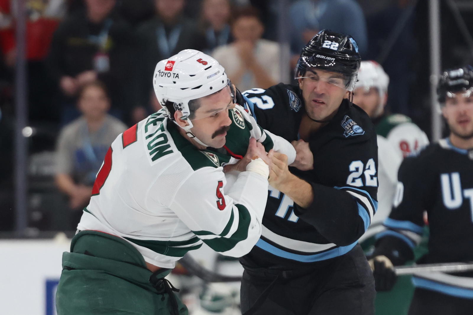 Early in the first period, with Utah up 1-0, Jack McBain and the Wild's Jacob Middleton dropped the gloves in a heavyweight tilt.