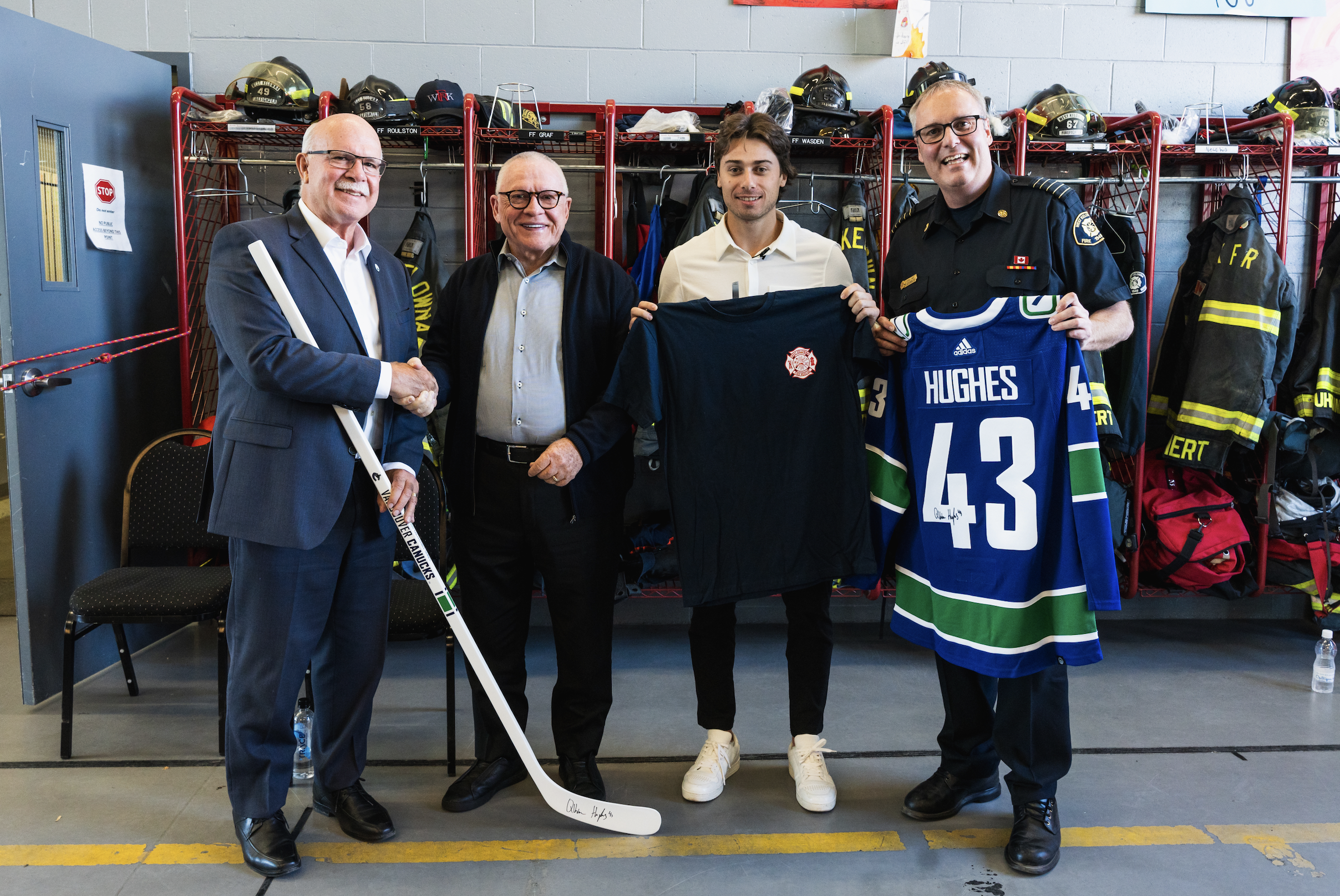 On Monday, Quinn Hughes was named 15th captain of the Vancouver Canucks. On Friday, he served as an honorary fire captain as he joined the team's President of Hockey Operations Jim Rutherford in West Kelowna to donate $250,000 on behalf of the organization to wildfire relief in the area.