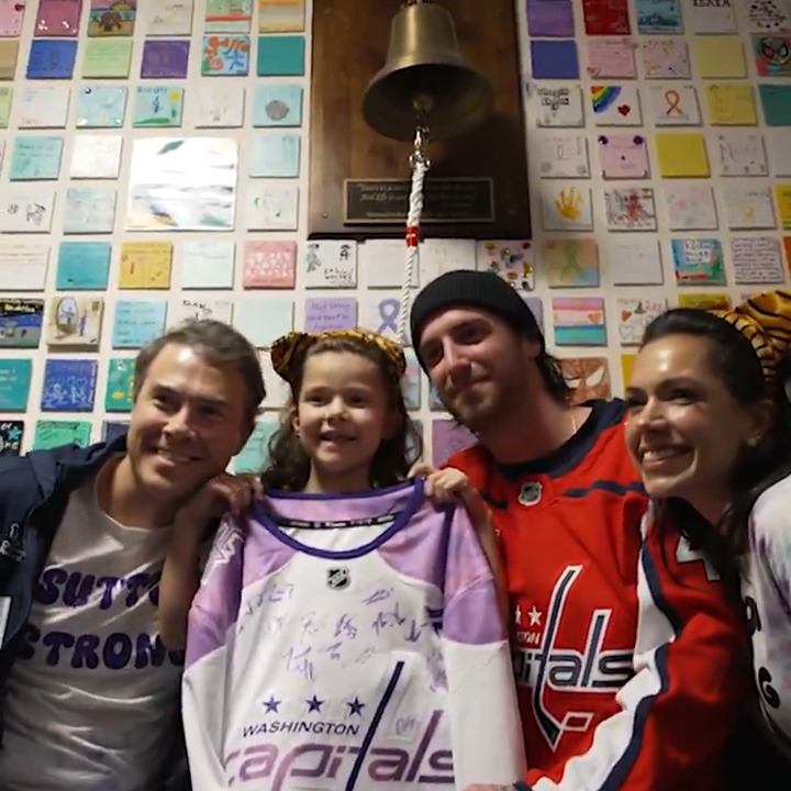 A friendship that blossomed at last year's #HockeyFightsCancer Skate, LT joined Sutton today for her bell ringing to celebrate completing nearly 800 days of cancer treatment.