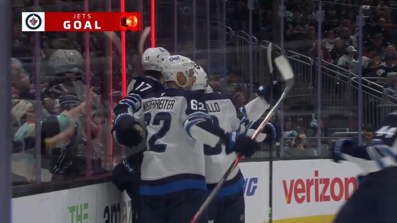 Things were tied after the first but the Jets lethal top line didn't waste long to make their presence felt. Winnipeg center Mark Scheifele found room behind the Seattle defense and opened up for a breakaway as defenseman Neal Pionk, hit him with a perfect breakout pass for a solo chance. Scheifele buries the shot to put the Jets back up.