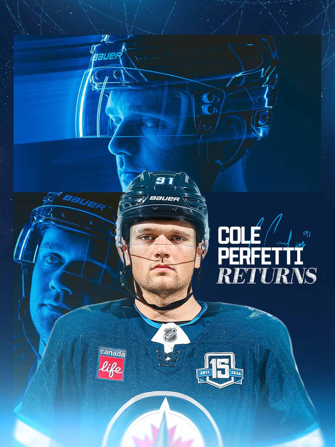 After a breakout season and a historic playoff goal, Cole Perfetti returns to the ice Sunday, poised to boost the Jets' offense.