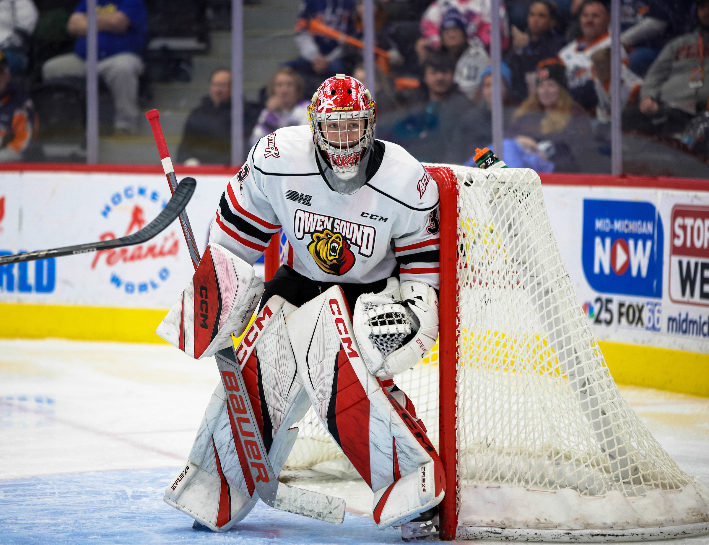 The Thunder Bay, Ontario-native plays for the Owen Sound Attack in the OHL, where he had an impressive draft-eligible season as their starter. George had a lot of games where he saw 40-50 shots, and he was able to hold the Attack in many games.