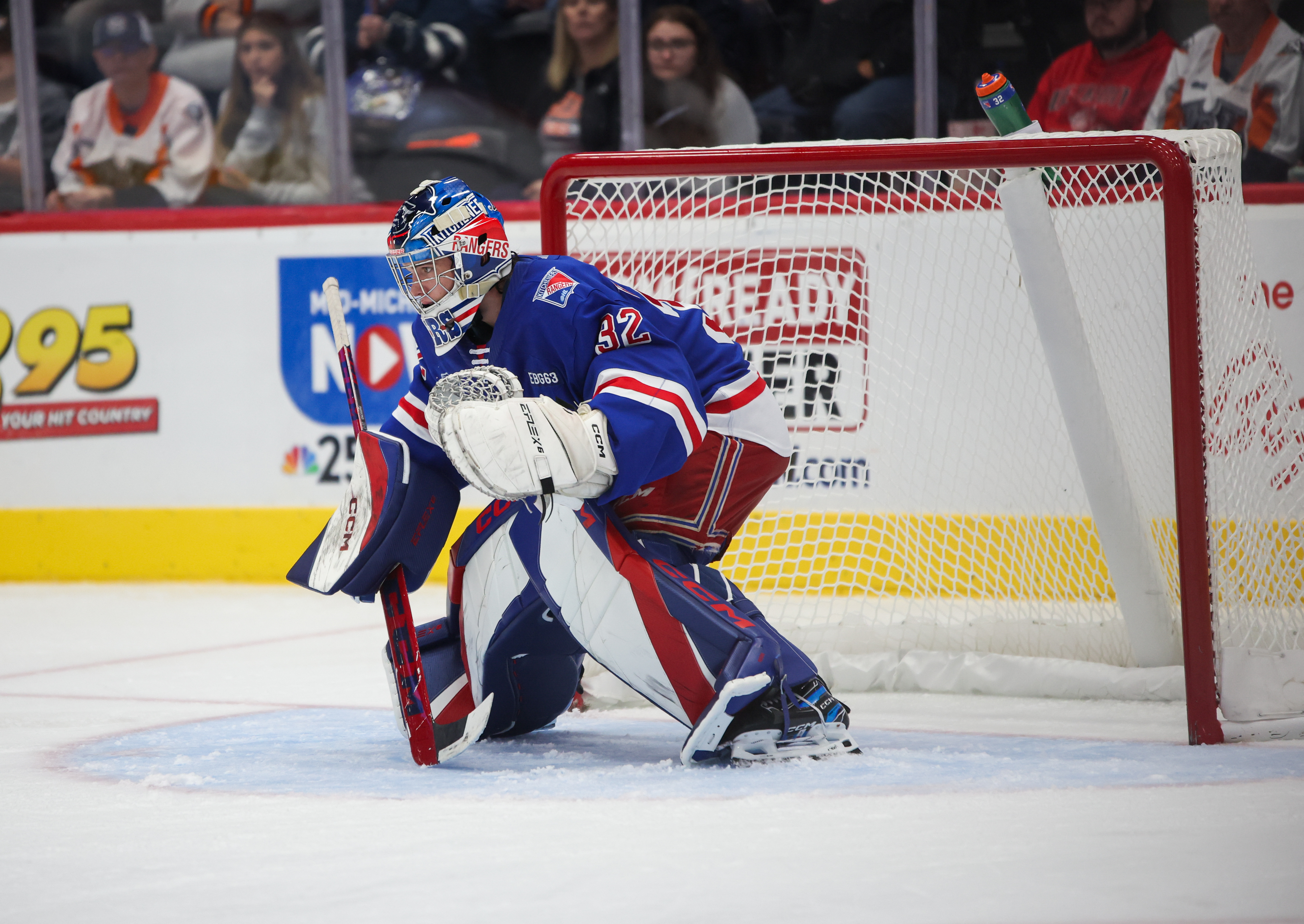 In 13 games this season, he has a 10-2-1 record with one shutout, a goals-against average of 2.51, and a save percentage of .911. He hasn't lost a game since last month on Oct. 4 in overtime against the Flint Firebirds.