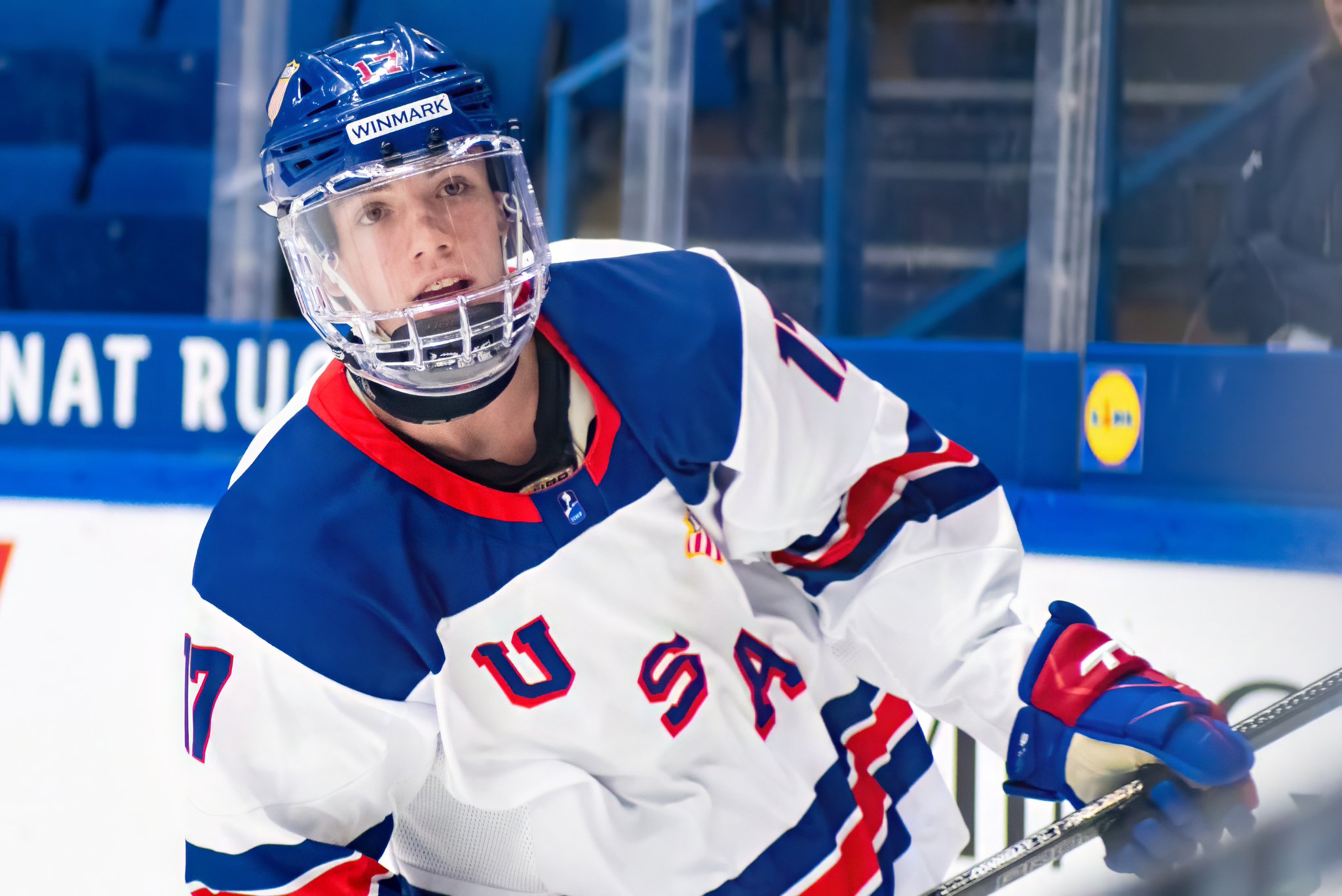 The U.S. Under-18 Men's National Team topped Latvia 7-1 in preliminary-round play of the 2024 IIHF Under-18 Men's World Championship on Sunday.