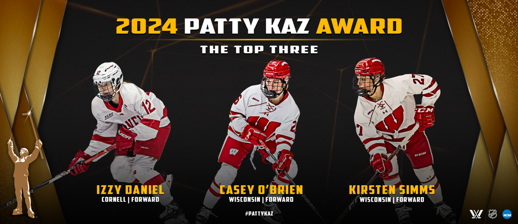 Izzy Daniel (Cornell), Casey O’Brien (Wisconsin) and Kirsten Simms (Wisconsin) have been named the 2024 Patty Kazmaier Memorial Award Top-Three Finalists.