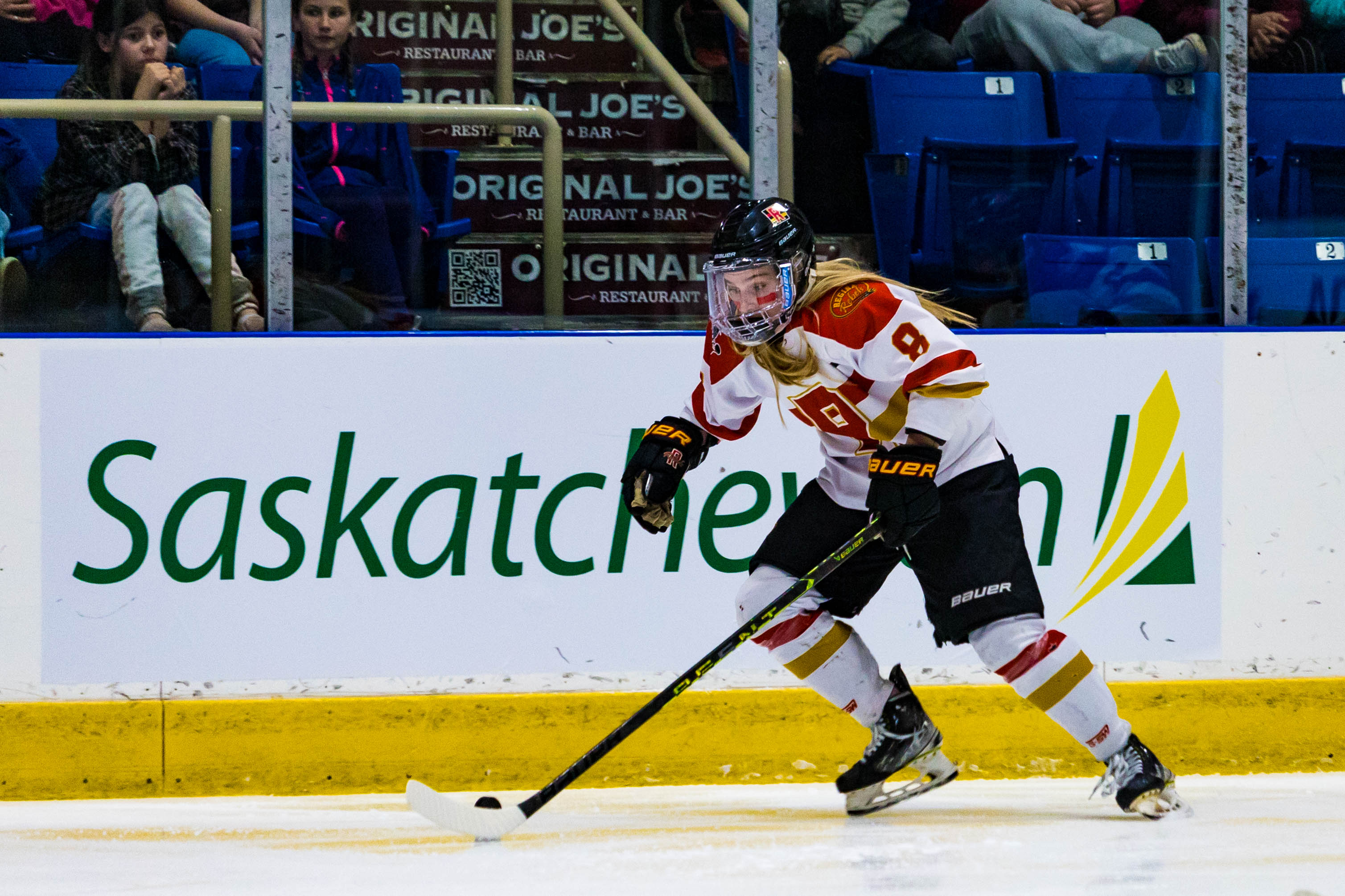 Greta Henderson, F, 2005 - Watching Henderson play, she hits the ice with swagger. Her confidence is contagious, and she has a natural goal scorers touch. The puck seems to find her, and her energy brings out the best in her team, and gets under the skin of her opponents. The top forward from the 2023 Esso Cup, Henderson led the tournament in goals. Captaining the Regina Rebels, Henderson compiled 36 goals and 65 points this season.