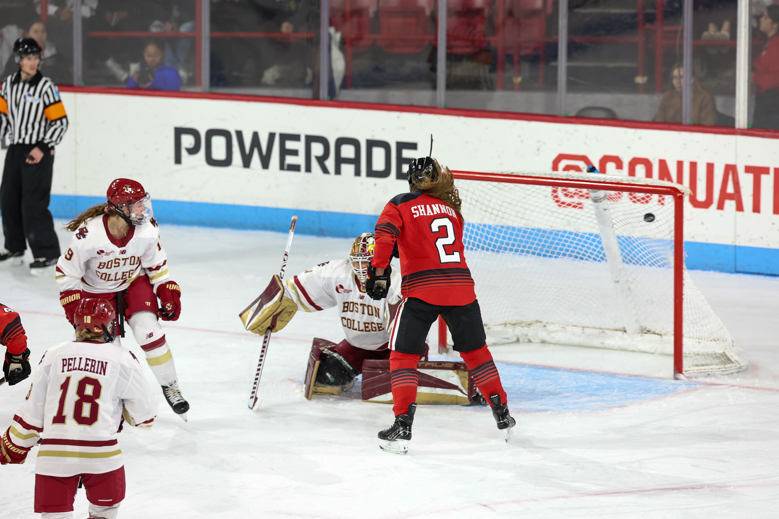 The second period saw Lily Shannon reclaim Northeastern's three goal lead, and while Gaby roy scored again for the Eagles late in the third, it was not enough. Lisa Jonsson made 37 saves for Northeastern in the win.