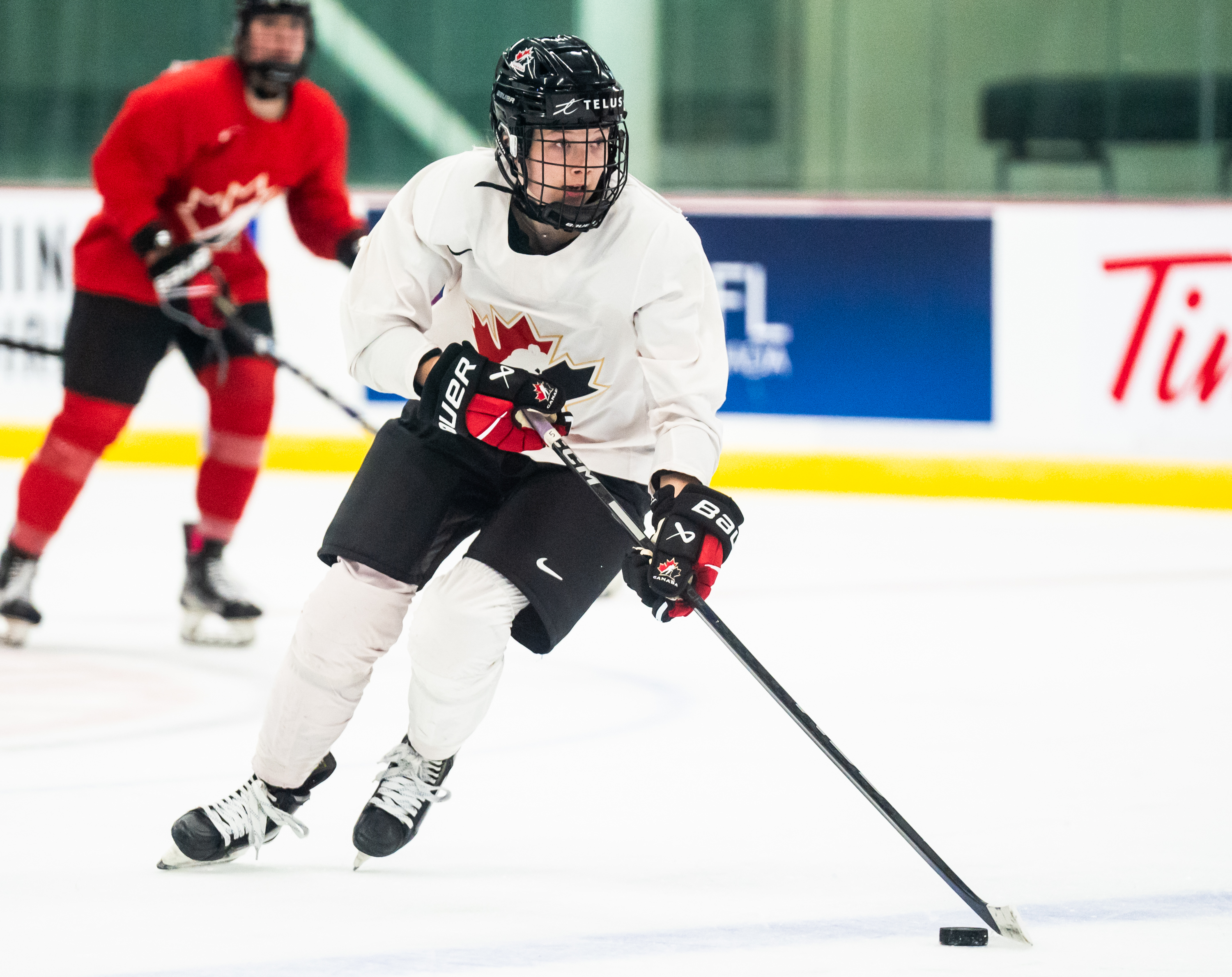 There were times at this camp where the five returning players from last year's gold medal winning team didn't stand out. Caitlin Kraemer, Abby Stonehouse, Charlotte Pieckenhagen, Mackenzie Alexander, and Morgan Jackson will certainly make up the core of Canada's offense. If any of these players is set to take a step forward, based on this camp, Alexander could be that player, while Abby Stonehouse showed a 200-foot game that will benefit Canada and torture opponents. Beyond this group, Stryker Zablocki, Madison Burr, and Sienna D’Alessandro all showed significant upside up front. Zablocki in particular showed that her elite speed was still impactful against stronger competition, but also that her vision and hockey IQ are on another level. Other forwards including Jessiva Mackinnon, Reese Logan, Sara Manness, Maxim Tremblay, Dorothy Copetti, Maxine Cimoroni, and Grace Outwater all showed flashes in the camp that could entice coaches to bring them along. Canada's forward corps however is filled with versatility as there were others, players like Emma Beauchamp and Jenna Smellie who showed traits that could make them valuable checking line forwards. Similar to the blueline, each forward showed unique traits, and none should be counted out. It's highly likely a forward not mentioned above ends up on Canada's roster.