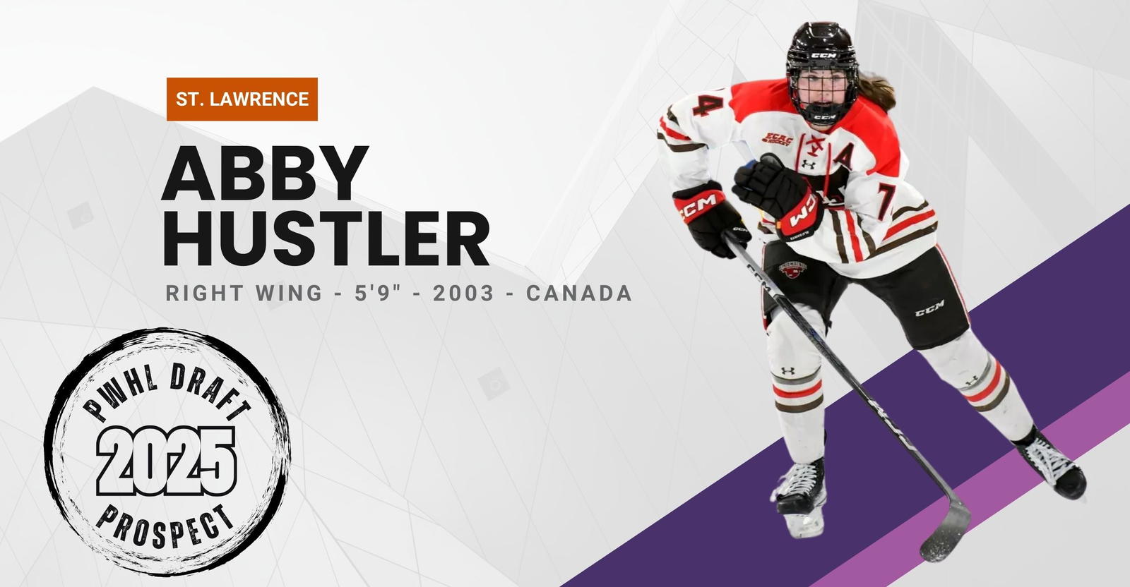 Abby Hustler is a 5-foot-9 winger who spent her NCAA career with St. Lawrence. Throughout her NCAA career, Hustler established herself as one of the top scoring forwards in NCAA hockey.