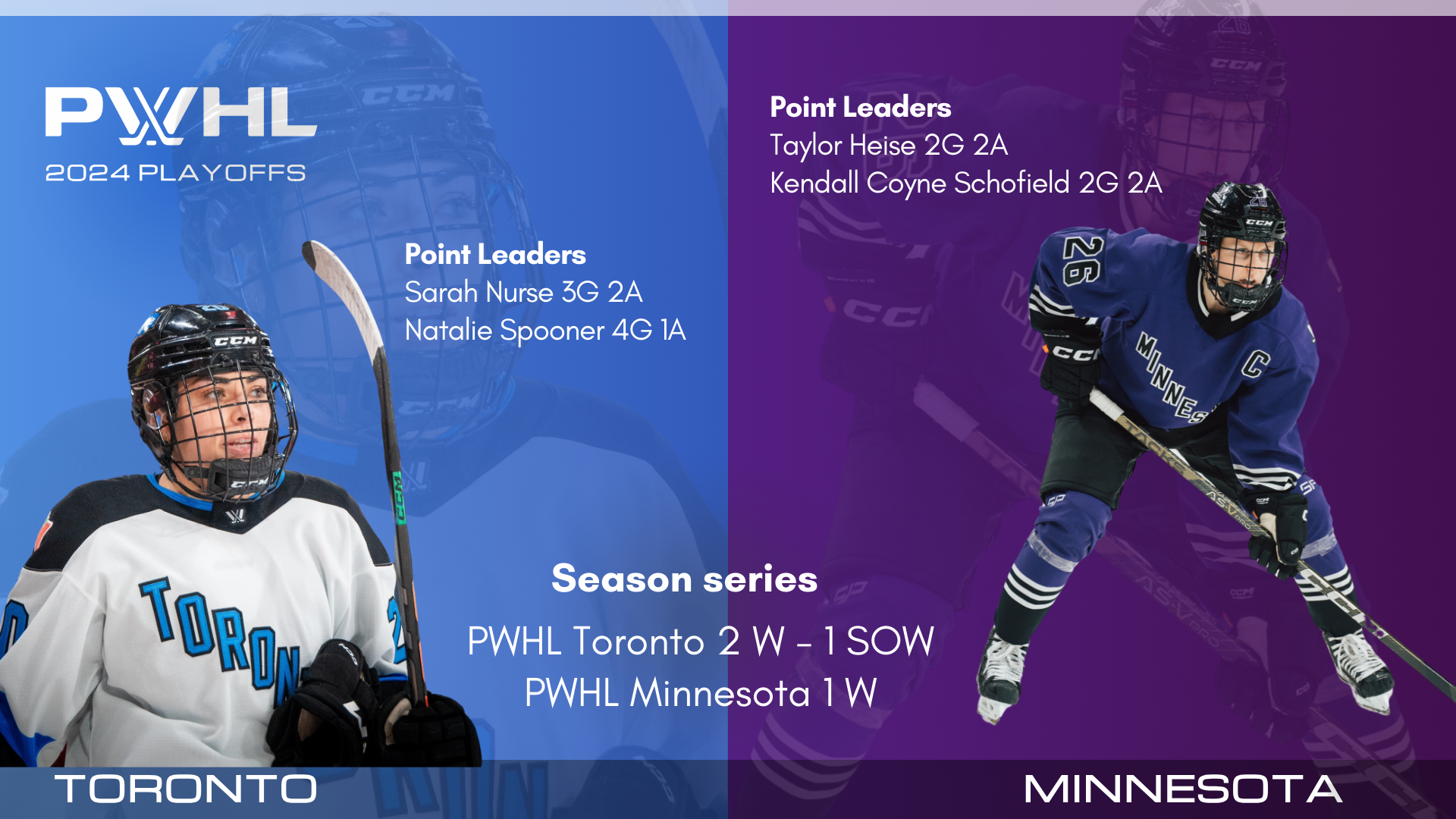 Here's a break down of the head to head matchups between PWHL Toronto and PWHL Minnesota, and PWHL Boston and PWHL Montreal heading into the PWHL playoffs.