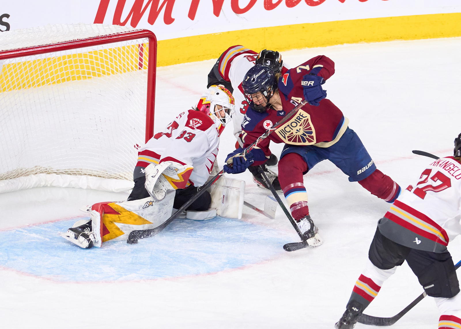 It was the longest game in PWHL history, and the second longest in Montreal professional hockey history. Catherine Dubois scored the winner at with 4:27 to go in the fourth overtime period to tie the series at 1-1, and give the Victoire the win.