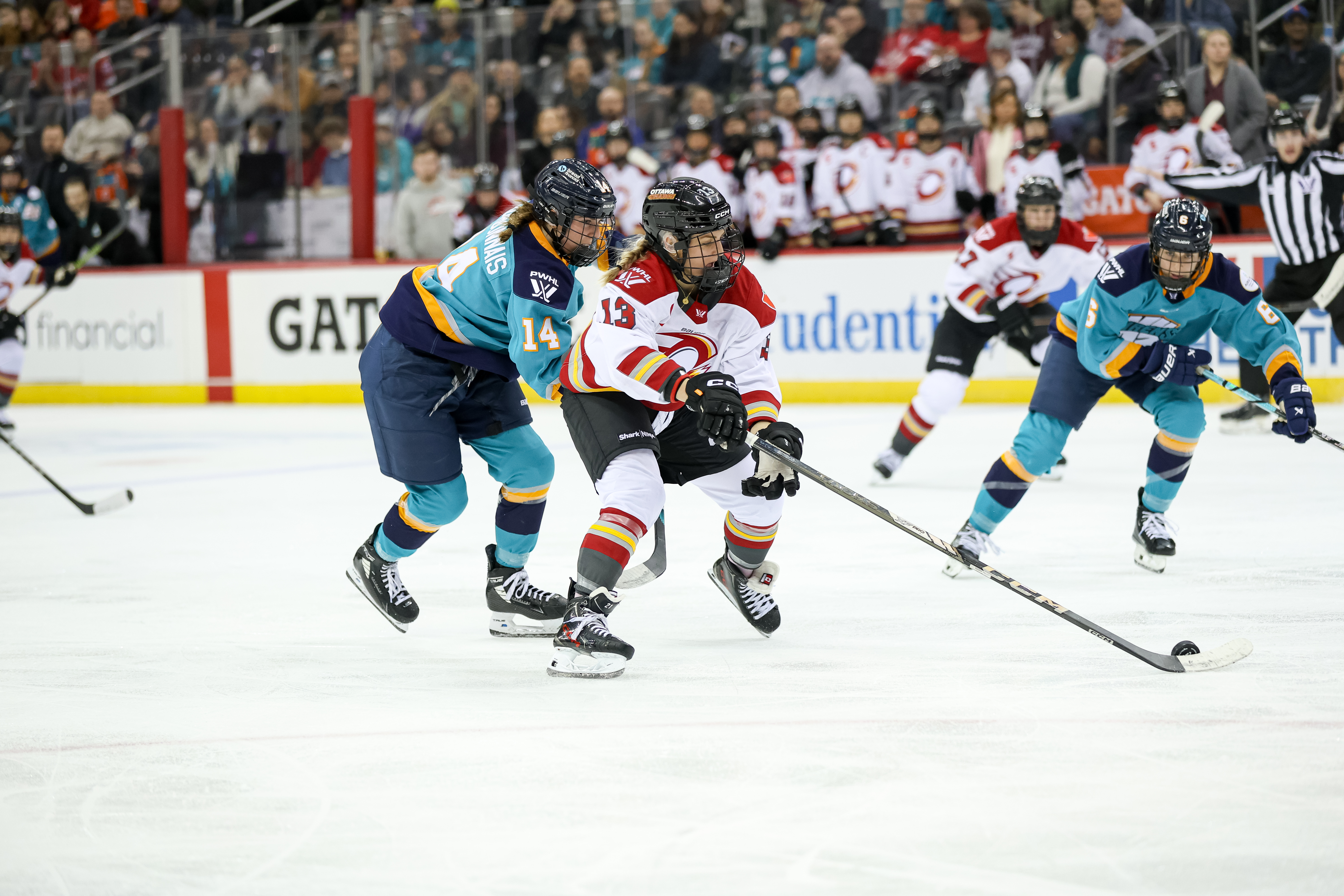 Photo @ PWHL - Ottawa Takes Charge Against New York Leap Frogging Out Of The PWHL's BasementNEWARK, NJ -- The Ottawa Charge played like anything but a last-place team with a resoundingly strong performance for a 3-1 victory over the New York Sirens in a PWHL match-up at the Prudential Center.