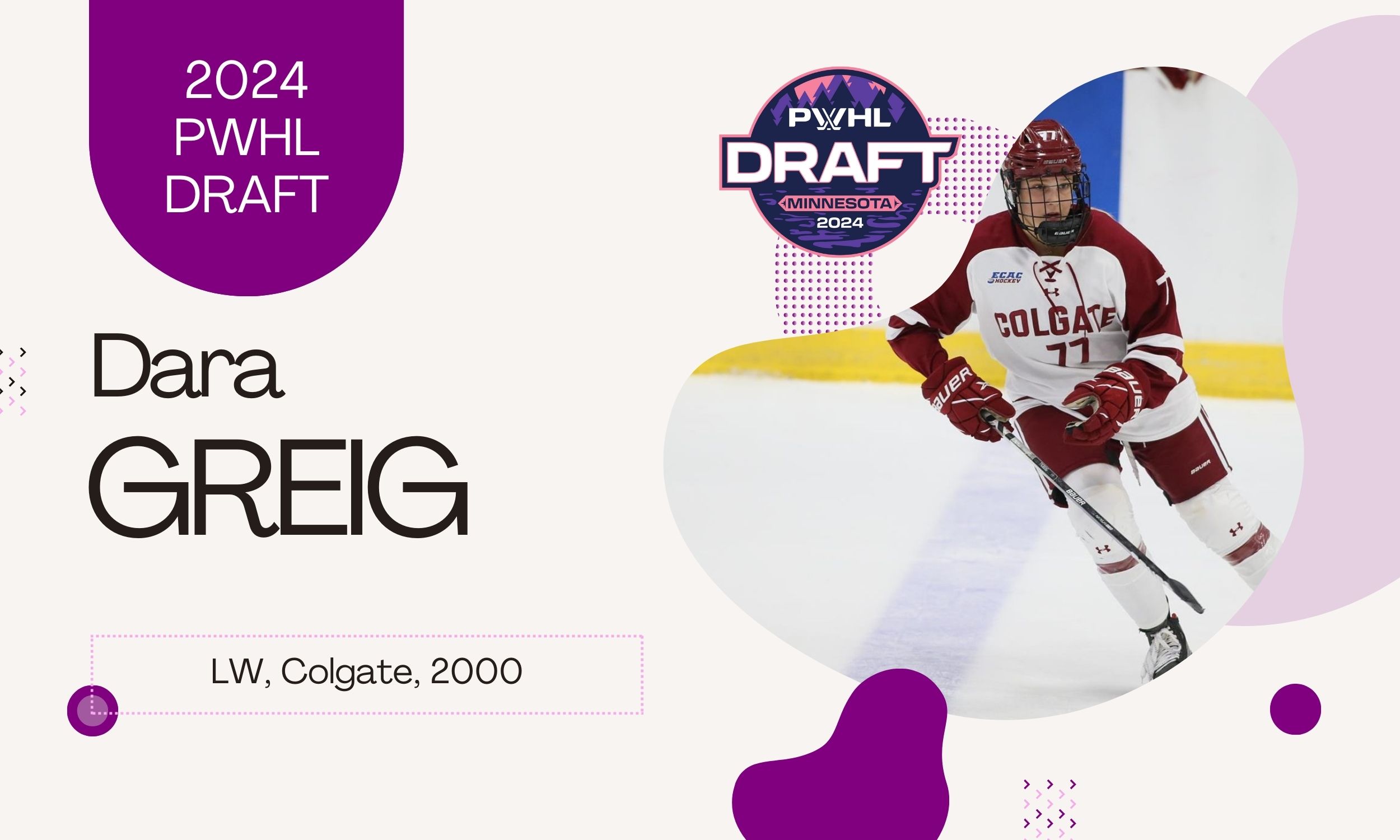 Dara Greig is considered a probable prospect for the 2024 PWHL Draft. The Colgate forward is projected to go in the mid-rounds of the draft.