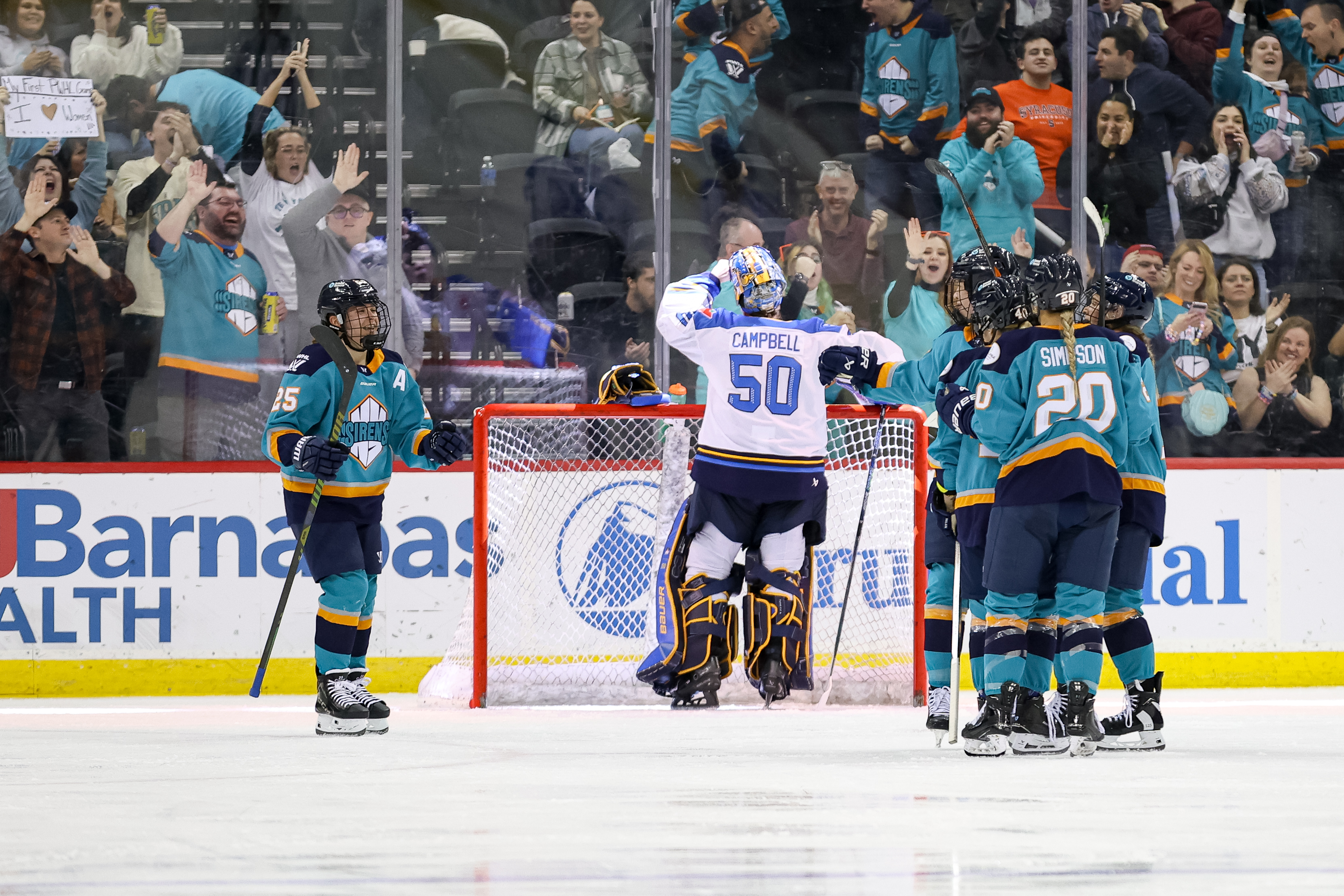 Less than a minute later on the power play, Micah Zandee-Hart made it 3-0 after converting a one-timer that beat Campbell to the glove side. Jesse Eldridge and Abby Roque contributed the helpers that allowed the Sirens' captain to record her first goal this season.